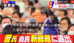 9月14日,日本内阁官房长官菅义伟以绝对优势击败另外两位候选