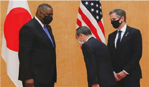 日本首相菅义伟含胸哈腰向美防长奥斯汀深深鞠下了近乎于完美的一