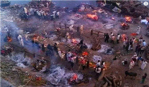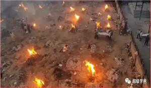 由于印度的死亡人数太多,印度火葬场陷入瘫痪,大规模的尸体面临