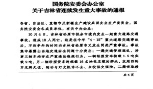 近日,国务院安委会办公室发布了一则“关于吉林省连续发生重大事