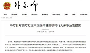 外交部正告美方:不得以任何方式支持纵容反中乱港势力