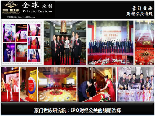 ![]() 引言:豪门世族认为对企业而言,IPO上市是企业的一个里程碑,是企业走向成熟的标志和成人礼,选择财经公关公司至关重要。财经公关公司是总导演,总策划师,这个成人礼是否做得漂亮,关键在于财经公关公司的选择。