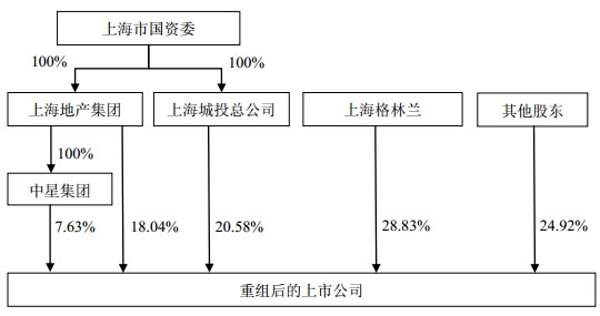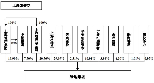 二、下图为重组后的新绿地集团的股权结构,上海格林兰作为员工持股平台,持有重组后新公司28.83%的股份。