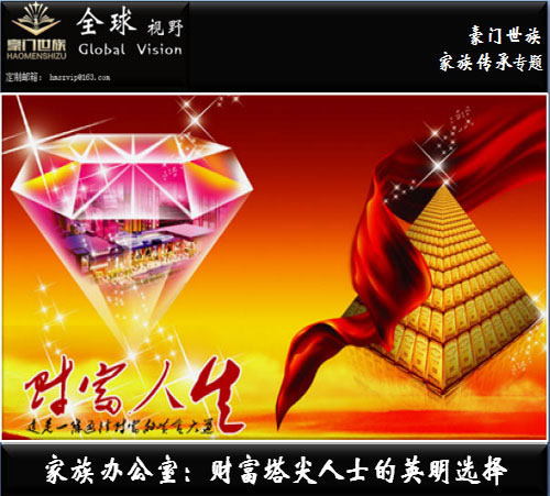 导言:根据国际家族办公室协会2011年发布的报告,中国资产达10亿美金的富豪128个,排名世界第二,仅次于家族办公室最为发达的美国。随着中国富豪财富的增长和理财意识的觉醒,他们当前面临的最为紧迫的任务就是寻找科学严谨的资产管理模式。豪门世族家族办公室致力于全球华人家族传承与发展,致力于家族理念、信仰、家风、家规的制定与财产传承和行为规范的打造。豪门世族认为:一切传承,最重要的是精神传承!财富与身份只是一个工具,一个晋阶提升的工具,就像是自行车与小汽车,平民与贵族;如果没有精神传承,一切皆为浮云,这就是富不过三代的最主要原因。 根据国际家族办公室协会2011年发布的报告,中国资产达10亿美金的富豪128个,排名世界第二,仅次于家族办公室最为发达的美国。2011年中国10亿美元的富豪较2010年的增长了25%,增速为全球第一。依据目前国际上通行的与家族办公室机构合作的门槛,中国资产超过20亿元人民币的财富人群大约有2000人。随着中国富豪财富的增长和理财意识的觉醒,他们当前面临的最为紧迫的任务就是寻找科学严谨的资产管理模式。 豪门世族家族办公室作为中国第一个家族办公室,不仅维持其国际通行的服务体系,还结合中国国情,融合中国文化,为中国Family Office服务行业制定了行业标准以及发展方向。 Family Office的前世今生 在中国,很多人都会问什么是Family Office?它源于西方,准确地说近期才渐渐被国人知晓,一般译为“家族办公室”。根据美国家族办公室协会的定义,家族办公室是“专为超级富有的家庭提供全方位财富管理和家族服务,以使其资产的长期发展,符合家族的预期和期望,并使其资产能够顺利地进行跨代传承和保值增值的机构。” 国际上的Family Office有别于传统的私人银行,通常由财务顾问、律师、注册会计师、投资经理、证券经纪、保险经纪、银行、信托等领域经验丰富的专才组成。服务项目主要以资产管理和遗产规划、日常财务、企业管理为主。 家族办公室发展的早期阶段,由于仅为一个家族服务,运营成本较高,因此,一个家族需要至少拥有1亿甚至2亿美元的财富,才值得建立一个单一家族办公室。20世纪90年代,有些单一家族办公室不再局限于服务一个富有家族,开始同时向几个或多个富有家族提供服务,并由此产生了多家族办公室。随着多家族办公室的出现,规模效应开始显现。有些多家族办公室的客户群能达40-50家,成本收益结构日益改善。 Family Office在国内外的发展 根据美林发布的《2011全球财富报告》,全球大部分财富集中于超富裕阶层。截至2010年年底,超富裕人士的人数仅占全球富裕人士总数的0.9%,但所拥有的财富却相当于全球富裕人士财富总量的36.1%。随着世界各地富豪越来越多,家族资产规模越来越大,家族成员关系越来越复杂,对家族财富的管理需求越来越迫切。因此,家族办公室得以在欧美和澳大利亚等国家逐渐盛行起来。 依据目前国际上通行的家族办公室的门槛,中国资产超过20亿元人民币的财富人群大约有2000人。随着中国富豪财富的增长和理财意识的觉醒,寻找合适的管理模式已成为他们面临的最为紧迫的任务。 “假若有人问你,最顶级的私人财富管理机构是什么,如果你回答是私人银行,那就错了。如果您有100万美元的可投资资产,私人银行可以为您打理财富;如果您有1亿美元以上的身家,Family Office才是您的最佳选择”。 中国“家族办公室FO”案例浅析 由于“家族办公室”在中国尚处于空白领域,记者几经寻觅,终于找到了中国第一个家族办公室“豪门世族家族办公室”。据创始人李桂松先生介绍:“家族办公室最早起源于古罗马时期的大”Domus“以及中世纪时期的大”Domo“。现代意义上的家族办公室出现于19世纪中叶,一些抓住产业革命机会的大亨将金融专家、法律专家和财务专家集合起来,研究的核心内容是如何管理和保护自己家族的财富和广泛的商业利益。这样就出现了只为一个家族服务的单一家族办公室。1882年,约翰·D·洛克菲勒建立了世界上第一个家族办公室。” 李桂松先生指出:“在中国经济继续保持较快发展的背景下,中国富裕家族会呈现继续快速增长的趋势,随着中国富裕家族财富意识的觉醒,寻找合适的财富管理模式已成为他们面临的最为紧迫的任务。我们将欧美有着上百年历史的家族办公室模式引入中国,以国际领先的理念为基础,引进并完善了Family Office服务体系,打造了专为中国富裕家族提供服务的家族办公室“。以专家顾问团的形式,为中国家族提供更贴心的服务,如:资产管理、遗产规划、日常财务、企业管理、上市咨询等,这其中不仅拥有利于家族生意发展的金融服务,且更加注重对家族成员生活细节的专属服务,比如:许多富裕家族希望捐出一部分资产回馈社会,进行爱心传递的接力赛。”豪门世族家族办公室便会为其设立专项慈善基金,与爱心人士共襄善举,藉此增进家族成员的凝聚力,提升家族名誉,培养家族成员的公益心。 在目前,中国的“富二代”似乎已经成为权力、金钱、嚣张跋扈之人的象征。其实,经过家族办公室的引导和帮助,“富二代”也同样可以成为热心公益事业、关爱社会的爱心大使的象征。 “豪门世族家族办公室”为中国富裕家族提供的全方位服务中,除资产管理等金融服务外,更精化了生活服务,比如:关注家族