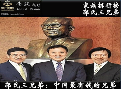 导读:在2006年《蒙代尔》中国500富豪榜上,前三名都来自香港,郭炳湘、郭炳江和郭炳联兄弟三人以1010.4亿人民币位居第一,冯国纶和冯国经兄弟以330亿位居第二,刘銮雄和刘銮鸿兄弟以167亿资产位居第三。 子承父业虎父无犬子 郭炳湘三兄弟,为新鸿基地产创办人郭得胜的子嗣。新鸿基地产创立于1972年,主要从事地产发展和投资。目前物业销售和租金收入的来源分别占去盈利来源的63.3%和26.6%,其他业务包括酒店经营、建筑、财务、保险、戏院、货仓、制衣、公共运输和电讯等。 讲到郭氏三兄弟,先要讲到他们的父亲--郭得胜。郭得胜原籍广东中山,早年随父经营杂货批发,战后移居香港,1952年设立鸿昌进出口公司,专营洋货批发。后来郭氏取得日本YKK拉链的独家代理权,当时正值香港制衣业兴隆,生意源源不断,一举夺得洋杂大王的称号。1958年,郭得胜与好友李兆基(李兆基,祖籍广东顺德,1928年出生,早年曾在其父开设于广州的一家银号当学徒。1948年,年仅20岁的李兆基身带1000港元,从广州南来香港,在金铺做外汇黄金买卖,1958年起与郭得胜、冯景禧合伙从事地产发展)进军地产业。1963年,三人各投资100万港元创办了新鸿基公司。郭得胜为董事局主席,李兆基、冯景禧任副主席。 1972年7月14日,新鸿基地产发展有限公司注册成立,并于8月23日上市,市值为港币4亿元。雇佣员工约30名,主要从事地产发展和投资。 进入20世纪80年代,新鸿基地产已经发展成为香港地产界的五虎将之一。 1987年10月,新鸿基地产与信和集团合作,以33.5亿港元的巨资投得湾仔一块地皮,兴建了当时亚洲最高的建筑物--中环广场。 1990年10月,郭得胜因心脏病复发去世。参加葬礼的有李嘉诚、包玉刚、邵逸夫、霍英东、郑裕彤、李兆基等工商业巨子,当时报刊评论:这几位扶灵者就已掌握了半个香港的经济命脉。那时,新鸿基地产的市值已达254亿港元,与上市时相比,增长了63.5倍。 郭得胜去世后,新鸿基地产掌舵的成了郭家第二代,其长子郭炳湘出任集团董事局主席兼行政总裁,老二郭炳江和老三郭炳联则出任副主席兼董事总经理。郭氏兄弟顺利接班,并使公司更上一层楼。1992年底,新鸿基地产市值超越李嘉诚的长江实业地产,成为香港市值最大的地产公司,堪称地产巨无霸。新鸿基地产在内地的投资项目包括:北京王府井的新东安市场、方庄的新城市广场、上海的中环广场等。除了主业房地产,新鸿基集团还积极投入酒店、交通、电讯、金融等多元化经营,是市场公认的子承父业最成功的家族企业。 新鸿基地产集团主席郭炳湘 新鸿基地产发展有限公司主席兼行政总裁郭炳湘出生于1959年,祖籍广东中山石岐,为新鸿基地产创办人郭得胜的子嗣,持有英国伦敦大学帝国理工学院土木工程系硕士学位,并为英国土木工程师学会会员。郭氏是新意网集团有限公司之执行董事,亦是多家机构的董事,包括九龙巴士控股有限公司、威信(香港)停车场管理有限公司及鸿昌进出口有限公司。 郭炳湘同时出任香港地产建设商会董事、东尖沙咀地产发展商联会有限公司董事及香港酒店业联会名誉司库。在社区参与方面,他为香港公益金历届董事委员会主席、卫奕信勋爵文物信托委员、青年总裁协会(中国分会)会员及太平洋地区经济理事会-中国香港委员会会员。他亦是香港中文大学工商管理硕士课程顾问委员会委员。郭炳湘为北京市及广州市荣誉市民及中华人民共和国全国政协常务委员。 郭炳湘、郭炳江、郭炳联兄弟与新鸿基地产 新鸿基地产的业务主要集中于香港,土地储备量在香港地产商中保持数一数二的地位。截至1994年底,土地储备达369.75万平方米,其中包括117.06万平方米已建成收租物业及252.69万平方米是发展中的地盘,以分布于新界各主要市镇之大型住宅发展项目为主。目前物业销售和租金收入的来源分别占去盈利来源的63.3%和26.6%,其他业务包括酒店经营、建筑、财务、保险、戏院、货仓、制衣、公共运输和电讯等。 以地产起家的郭氏家族,地产收益仍是主要收入来源,但新鸿基地产的边际利润比率与金融风暴之前比已经明显回落,1996年至1998年三个年度分别有51%、54%及52.5%,到1999年中期已下降至36.6%,反映地产商的黄金年代已经过去。然而,新鸿基地产于1999年下半年仍有多个新楼盘推出市场,包括红勘半岛豪庭、将军澳维景湾畔一期及清水湾半岛一期等项目。1999年建成楼盘面积超过40万平方米,有助增强集团的资金流量。除地产外,新鸿基亦致力开拓电讯业务,一方面为减轻对地产收益的依赖,二来亦为旗下物业增值,有利于销售。继1992年将旗下本地流动电话业务数码通分拆上市后,集团在1999年8月投资1000万美元,与北京控股合作,成立一个专门投资国际定位系统的风险基金,并计划2000年于美国NASDAQ市场上市。9月推出Cyberlncubator,以免租形式换取中小型科技公司股权;另外还注资Quamnet进军金融互联网。 至10月,推出网上拍卖站(点点红);又成立i-Hon,为旗下楼盘铺设光纤基建网路,为住宅增值,首个试点为半岛豪庭。此外,新鸿基地产与一些国际知名电脑商如SunMicrosystem及微软(Microsoft)成立策略联盟。除与SunMicrosystem合作发展AsiajavaVentureCapitalFund外,亦合作推出SuperHome?net网站,介绍旗下住宅及商业楼盘。另与微软合作发展数码仪表板(DigitalDashboard),向旗下租户提供。新鸿基地产旗下物业做资讯增值,被视为未来物业