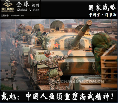 来源:《环球时报》2011年11月 作者:戴 旭 十七届六中全会提出要加强文化建设,这是一项庞大繁杂的工程。经济建设靠房地产拉动,文化建设靠什么拉动?笔者认为,在当前内忧外患的时世下,中国应从重塑国民尚武精神开始,逐步复兴传统优秀文化,内倡见义勇为的美德,外树仗义执言、凛然难犯的大国形象,从而赢得世界的应有尊重。 一 、尚武精神曾经是中国传统文化中最闪光的部分 中国文化中最辉煌的部分是在春秋战国的尚武时代产生的,诸子百家群星璀璨,成为国学之源,倡导在朝胸怀天下,安民强兵,锐意进取;在野则轻生死,重大义,知廉耻。先贤相望,士风因袭,秦皇汉武、唐宗宋祖、一代天骄成吉思汗,至今令国人景仰。| 新中国是在20世纪的战争血火中诞生的,这样的“出身”同样造就了当代中国人尚武自强的高贵品质。凭着这种品质,中国人完成了堪称人类奇迹的长征;在一穷二白的废墟上建造出震惊世界的“两弹一星”。这一混合了太多尚武精神的高技术武器系统,给中国带来的政治、经济和军事及外交收益,及对世界和平的贡献,是多少GDP也无法比拟的! 今天,如果说世界对于中国还有点敬畏,不是因为中国盖了太多的摩天大楼,而是因为中国有在两弹一星基础上的“神八”飞船,有“神八”背后继承了两弹一星精神的中国人!作为构筑中华文化基础的尚武精神,不仅仅在意志层面,更在物质层面上直接改变了当代中国的面貌和历史走向。 二 、尚武精神堕落是中国历代衰亡的共同内因 中国历史上的朝代交替各有原因,但有一点内因是共同的,那就是:承平日久,精神懈怠,统治者和普通百姓因贪于安逸而变得懦弱、懒惰,得过且过。自然界总是首先淘汰弱者,自身尚武精神堕落的危害,首先诱发外部大敌、小敌的骄横。宋朝和晚清是最典型的两个例子。宋神宗在西夏屡次寇边的情形下,不张挞伐,却赐岁币试图安抚,当时的边将说“朝廷素事姑息,所以狡虏生心,敢尔狂悖,今若再赐岁币,是益令玩视,愈亵国威。” 欧阳修形容当时的情状是:“上下安于无事,武备废而不修,庙堂无谋臣,边鄙无勇将,将愚不识干戈,兵骄不知战阵,器械腐朽,城郭隳颓。” 晚清则穷奢极欲,将世界第一的GDP大多变成皇家园林和其中的奇异珍玩。在世界列强纷纷围噬的半个多世纪中,晚清统治者孜孜在意的不是民族振兴国家富强,而是死保特权以悠游嬉戏。决定帝国命运的甲午大战在即,皇室仍不致力于武备发展却挪用海军军费修筑颐和园。 在当家人的示范作用下,这两个朝代的官员腐败至极。南宋是夜夜笙歌、醉生梦死。《申报》社论评述晚清的官场时说:“今日之执政者,其心思惟欲保全现在之禄位而已,或者欲超越现在之禄位而已,其外,固一无用心者也。”尚武精神的泯灭使军队丧失斗志,曾经不可一世的八旗兵最后堕落为追逐声色犬马的行尸走肉。曾经马上得天下的统治者利令智昏,对于生死存亡的军事变革也视为儿戏。一个在中国的日本人副岛种臣说:“谓中国海军之可虑,则实不足以知中国也。盖中国之积习,往往有可行之法,而绝无行法之人;有绝妙之言,而绝无践言之事。” 外族看到中国内部糜烂、孱弱,顿起杀心。宋朝偏安心理生出“因循姑息”,接着又导致内外交困,在人口、兵员、财富和火炮技术都占有绝对优势的情况下竟然不堪一击,始败于辽,后败于金,终亡于元。日本间谍评价晚清“上下腐败已达极点,纲纪松弛,官吏逞私,祖宗基业殆尽倾颓”,并以当时“大清全民都腐败”的形势判断,早则十年,迟则三十年,中国“必将支离破碎呈现一大变化”,于是建议大本营趁火打劫。 三 、发展经济,建设和谐世界不能以湮灭尚武精神为代价 回顾中国历史上各朝代尚武精神的泯灭,几乎都是在经济繁荣的时候发生的。对眼前利益的争夺和对既得利益的享受,让社会的精英阶层首先失去进取的意志,而领导人和精英阶层的意志又直接影响着整体国民,于是整个国家便萎靡不振。宋朝重经济轻武备,崇文官而抑武将,因此“兵虽多而战力弱,国虽富而兵不强”,成为肉多骨软的大胖子,经济发展成果始终成为周边少数民族政权的输血管。 晚清洋务运动后期,因为GDP的迅速提升,全世界都以为中国强大,中国自己也以为很强大。结果甲午一战露了馅,欧美纷纷扑上,把中国三十年“改革开放”的成果哄抢一空。实际上晚清在官僚垄断资本主义和帝国主义的双重榨取下,国家并没有发展出真正足以富国强兵的工业,主要的装备都是购自西方;“改革”不仅没有振奋已经低迷的民气,反而让官民因为内部利益争端而更加对立。国家的力量在肿胀的外形下,实际上是大大削弱了。 今天的中国,改革开放三十余年也取得巨大的物质成就。但不可否认的是,中国人的尚武精神也基本丢失殆尽。这表现为社会内部道德的急剧滑坡和对外部欺凌的一再忍让。让国人震惊的小悦悦事件,昭显了国人见义勇为良知的泯灭。南海周边大国纵横捭阖、耀武扬威,小国张牙舞爪甚嚣尘上,国家利益被疯狂掠夺、尊严被肆意践踏。一个有着安理会常任理事国、有着核武器、世界人口第一、拥有世界最大常备军的国家,怎么反会处于被包围、被侮辱和挑衅的境地? 若对比一下美国和俄罗斯,可以清楚地看到,并不是因为中国已经达到俄罗斯那样的军事水平,也不是像美国那样随意使用武力,才让中国成为众矢之的的。恰
