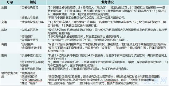 “衣食住行“中,“衣”主要在阿里基础电商部分,“食住行”可笼统概括在O2O业务布局之中。2013年底,淘宝推出移动餐饮服务平台“淘点点”,2014年10月底,淘宝旅行分拆独立“去啊”。除了以上两者是阿里亲自操刀外,其他O2O业务都是通过战略投资或收购来进行。 2014年,O2O炒得很热,已渗透家政、洗涤、美甲等细分本地化服务领域之中,不难发现阿里的O2O业务布局偏向大众用户、高频次消费领域。收购高德、投资北斗导航以及投资银泰,是阿里在服务O2O与零售O2O布局中的基础建设。滴滴打车、美团、基石信息等所投企业都是各领域的佼佼者,除了业务扩展需求外,也有战略防御意味,以之对抗腾讯、百度两大阵营。 也不难发现,无论是阿里自建抑或所有O2O公司,他们的共性都是“平台逻辑”,这些平台自建的又会形成一套业务链,比如,阿里独立在线旅游“去啊”之前,已经以28亿元战略投资基石信息,后者在国内五星级酒店管理系统中占90%的市场份额,旅游和酒店业务是可以互通的。所以,条条业务链镶嵌就会形成阿里O2O大平台的闭环。 此外,用户在“衣食住行”中的消费行为会产生大量原始数据,源源不断的数据沉积,奠定了阿里大数据业务的基石,最后阿里大数据业务又会反哺电商、O2O等业务,以此类似的方式循环不断。 以实物电商为主的阿里,在转向以服务为重心的O2O时,后者除了继承了前者的平台逻辑,二者如何有效结合是目前的“盲点“。 将医药放在O2O环节,除了阿里“未来医院“计划外,看不出其他相关联的地方,但随着国家食品药品监督管理总局发布《互联网食品药品经营监督管理办法征求意见稿》,拟放开网上药店的处方药销售出台临近,会打破医药、医疗器械线上化拘束,在O2O方向上探索,包括结合智能穿戴设备,BAT都会虎视眈眈。阿里战略投资全国中信21世纪(已改名为“阿里健康”)拿到第一块第三方网上药品销售资格证的试点牌照企业。可见,阿里在医药交易平台方向已有卡位,今后两年,赶上医药电商政策红利,垂直细分领域的医药电商企业会是阿里的“猎物”。 移动业务——压力来自用户逐渐养成的“去中心化”购物习惯