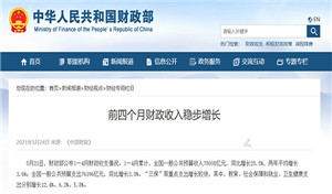 财政部:前四个月财政收入稳步增长